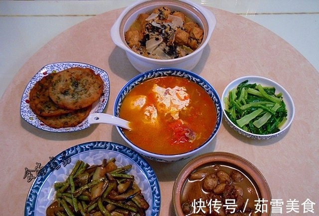 老妈做的五菜一汤 很家常接地气 吃的舒坦 在外花钱也买不到 快资讯